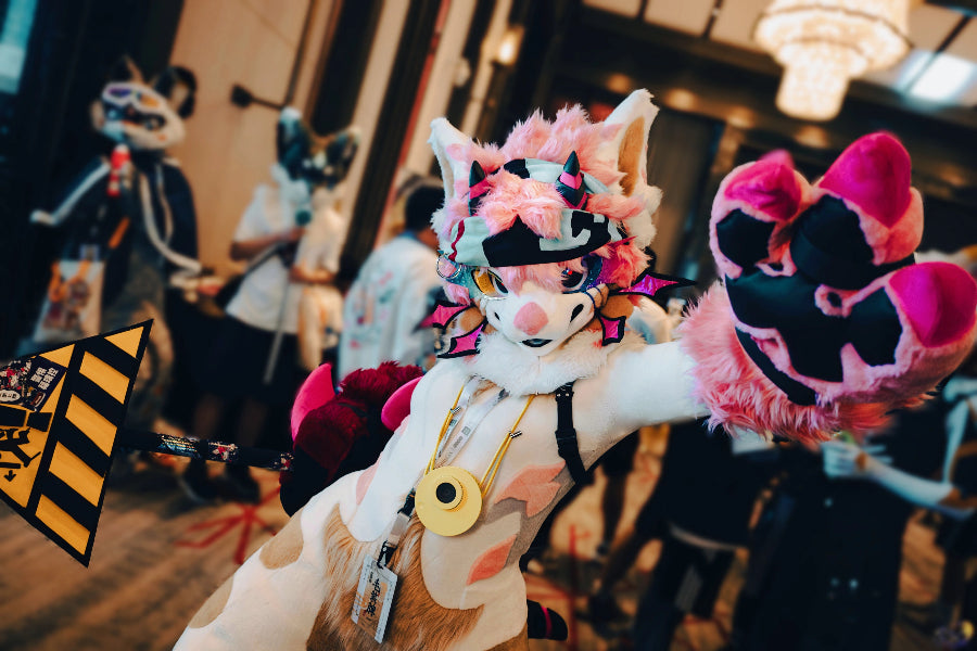 A bold and vibrant custom fursuit bursting with attitude — dynamic color blocking, oversized paws, and playful accessories that bring the character’s energy to life.Perfectly handcrafted to showcase personality, movement, and expression.